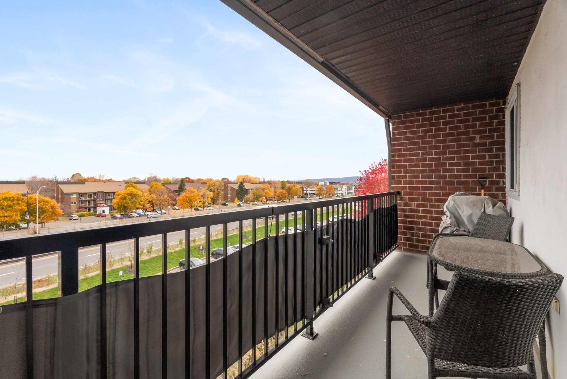 Inclus : luminaires, pôles, Rideaux et vénitiennes, BBQ électrique.