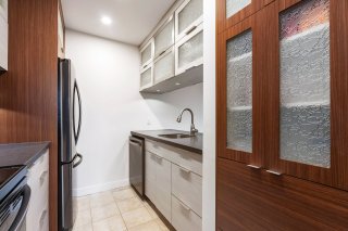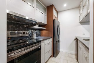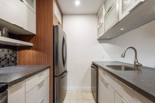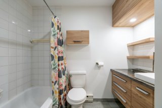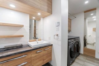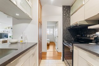 une cuisine moderne et une salle de bain rénovée avec