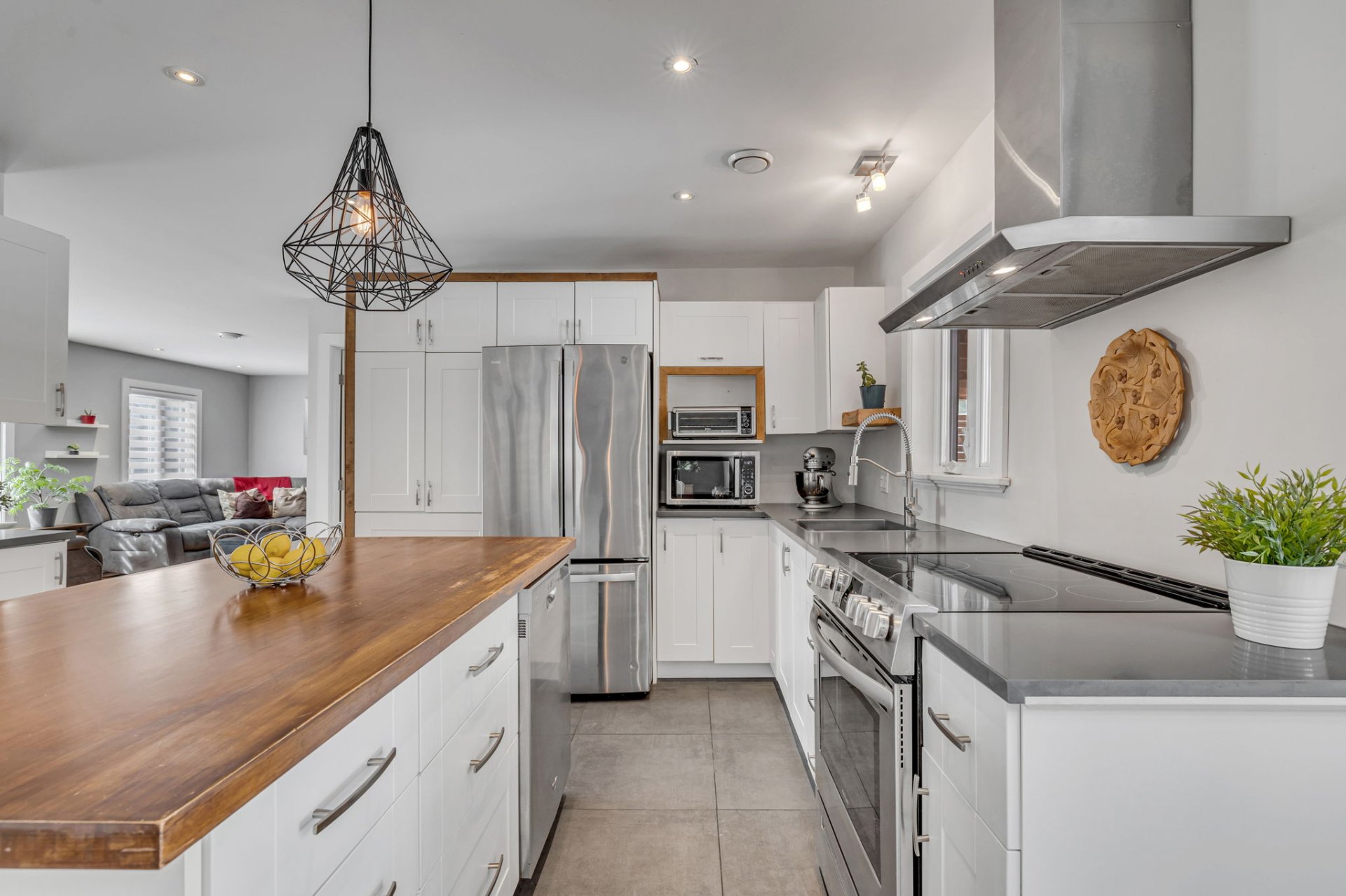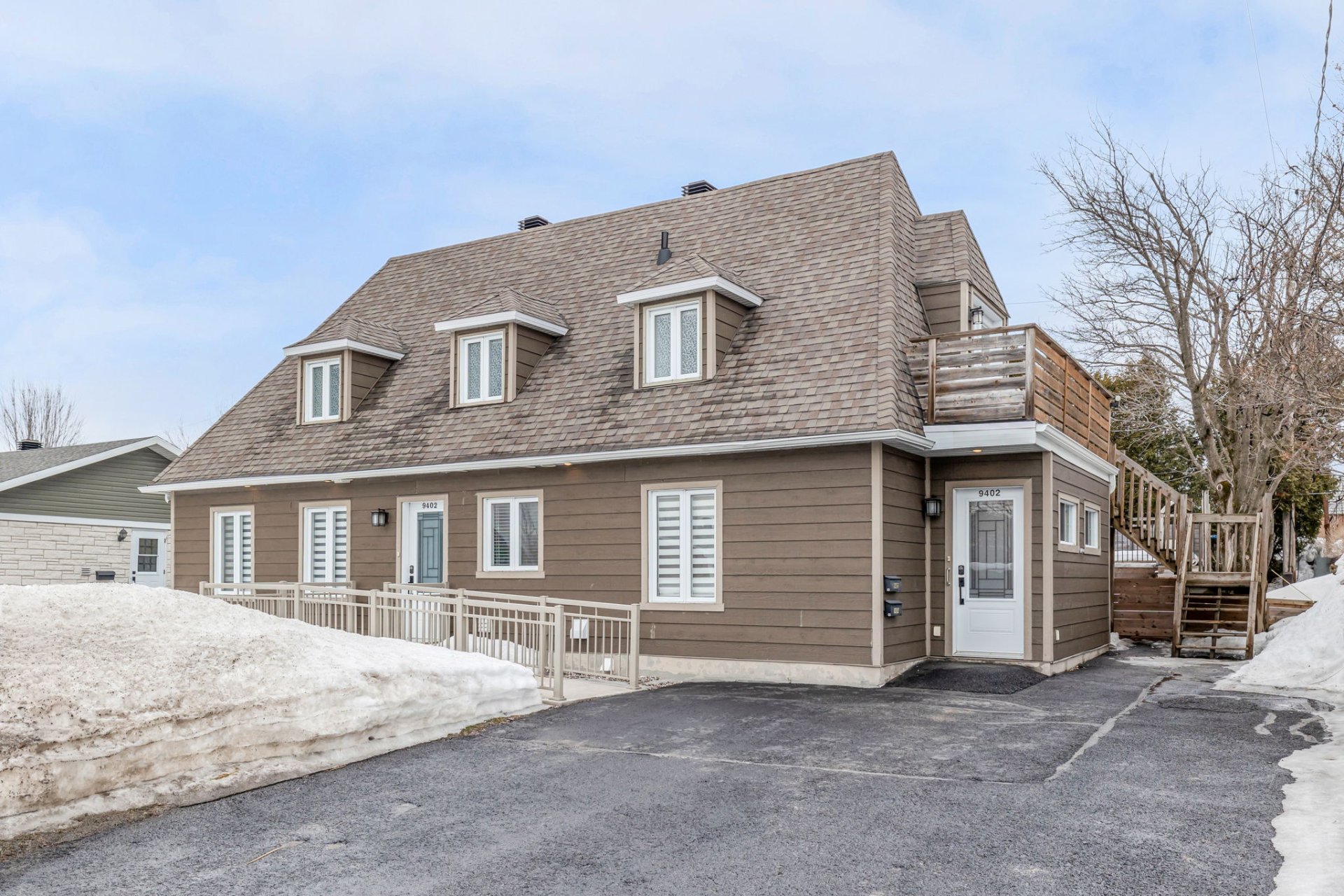 Inclus : Piscine et ses accessoires, thermopompe de la piscine, deux thermopompes murales, luminaires, stores, pôles et rideaux, miroir et meubles à souliers du 9402, aspirateur central et accessoires, spa et accessoires, table haute de bbq sur le patio, poêle et frigo et laveuse-sécheuse du logement du haut (9404), 2 étagères Ikea dans la chambre-bureau au sous-sol et étage Ikea au ss dans la salle familiale.