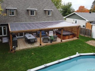 * Achat et installation d'une thermopompe pour la piscine, permettant de prolonger la saison estivale