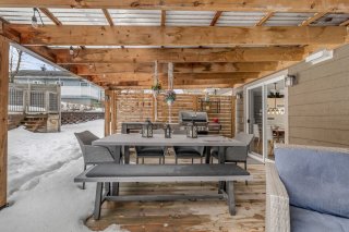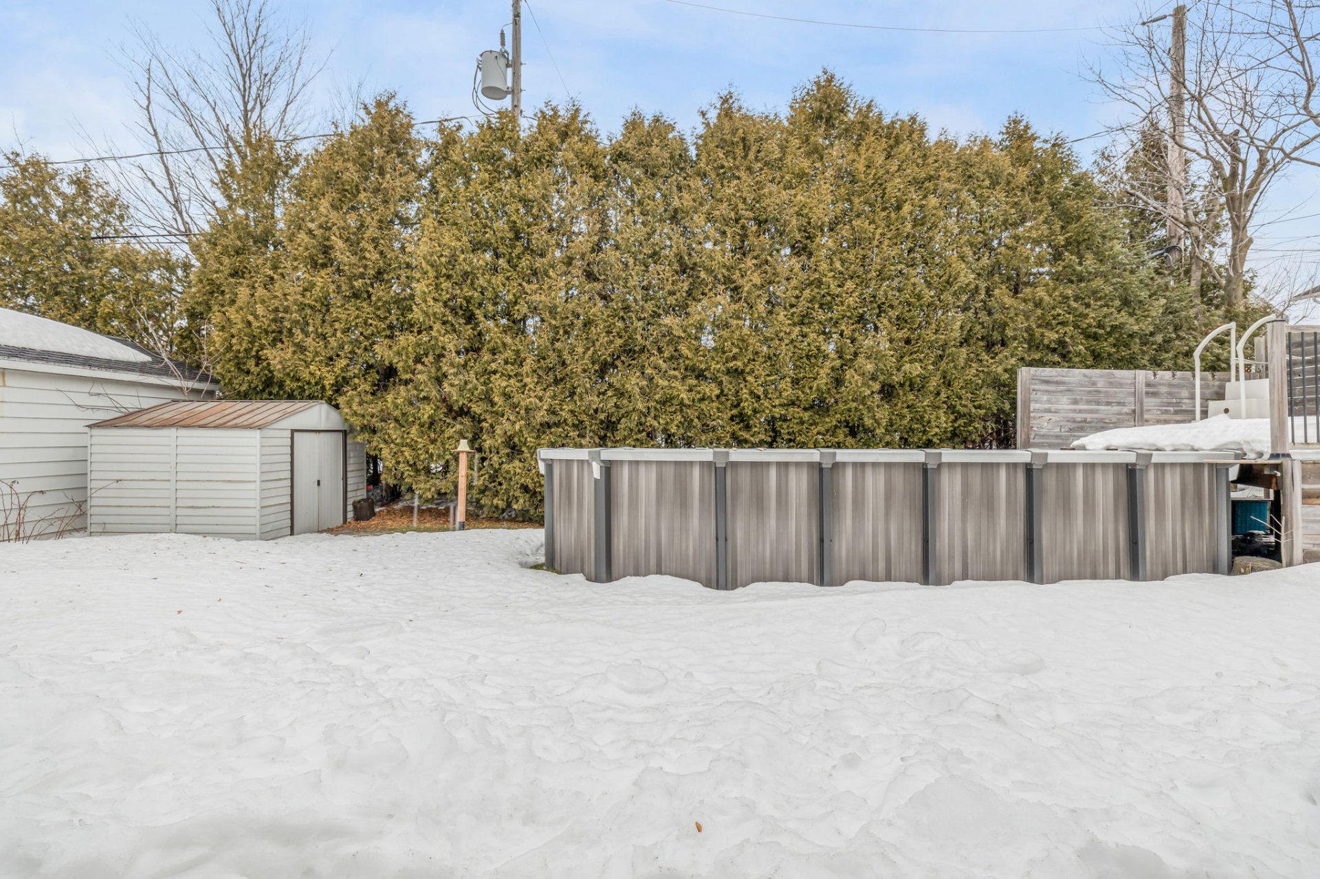 Inclus : Piscine et ses accessoires, thermopompe de la piscine, deux thermopompes murales, luminaires, stores, pôles et rideaux, miroir et meubles à souliers du 9402, aspirateur central et accessoires, spa et accessoires, table haute de bbq sur le patio, poêle et frigo et laveuse-sécheuse du logement du haut (9404), 2 étagères Ikea dans la chambre-bureau au sous-sol et étage Ikea au ss dans la salle familiale.