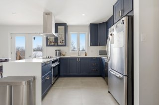 Inclus : Four encastré, luminaires, habillage de fenêtre, bac de poubelles et recyclage.